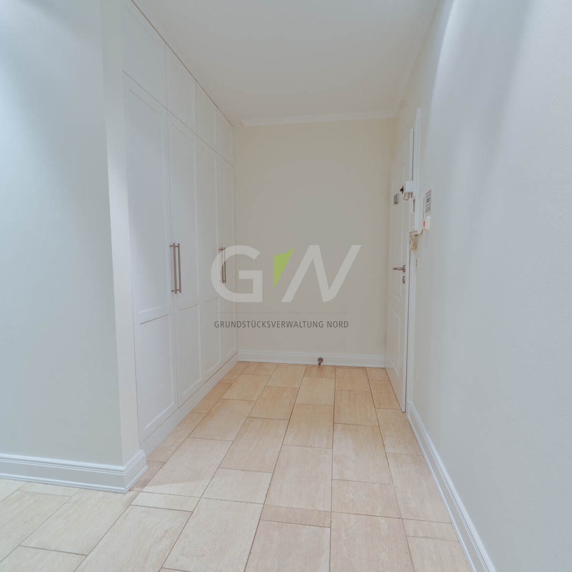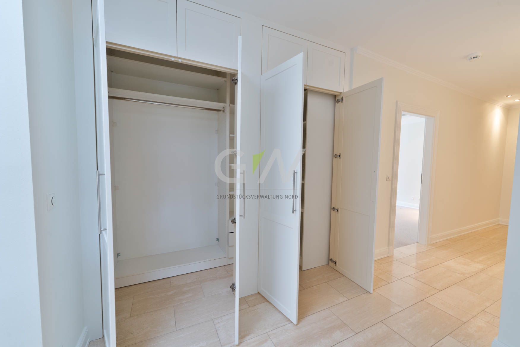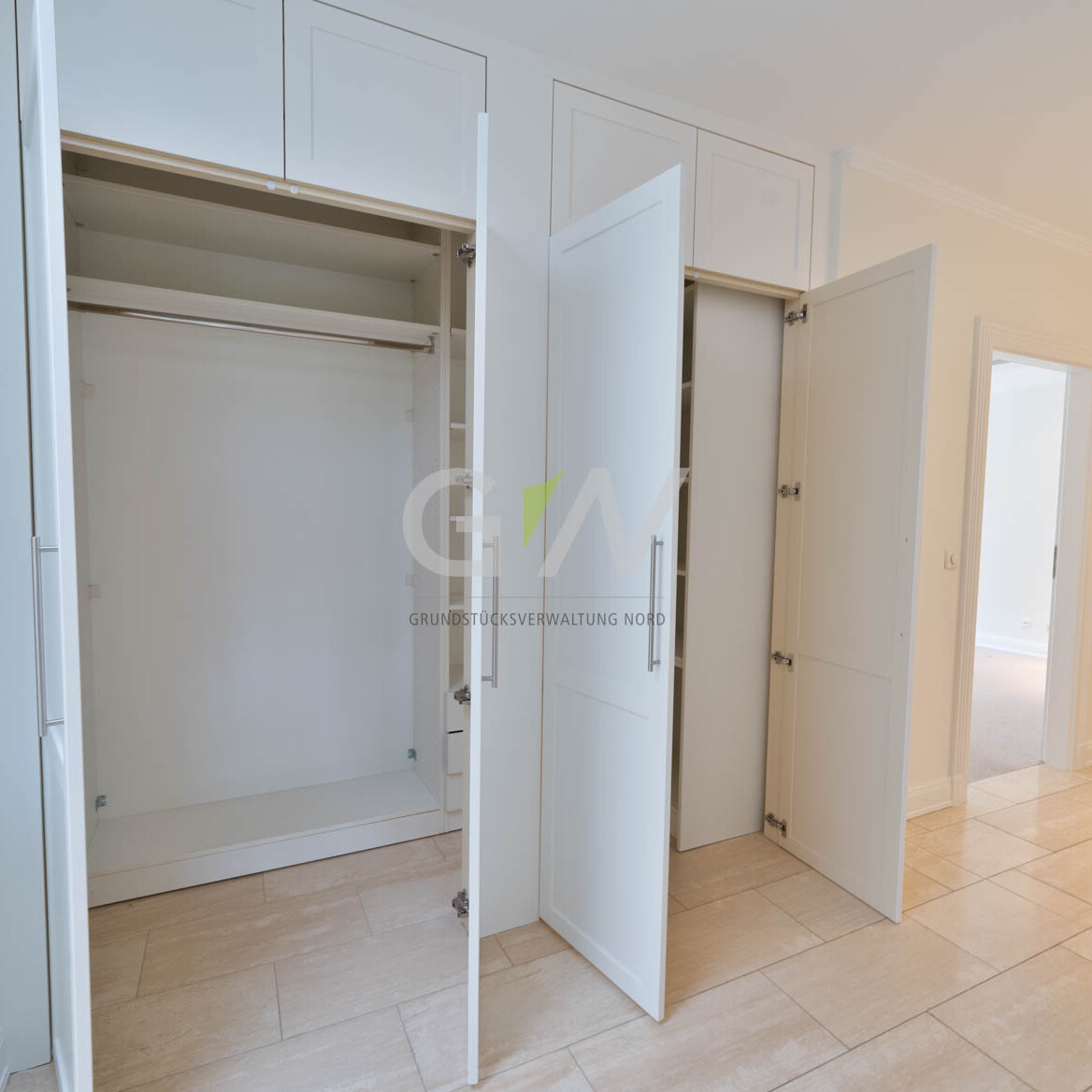 Die gesamte Wohnung hat vor wenigen Tagen einen weißen Komplett-Anstrich erhalten und die Einbauschränke, Türzargen und Türblätter wurden neu lackiert. Anders als auf den abgebildeten Fotos, ist die Möblierung entfernt worden und die Wohnung wird – bis auf die Einbauschränke/Küche – unmöbliert veräußert.