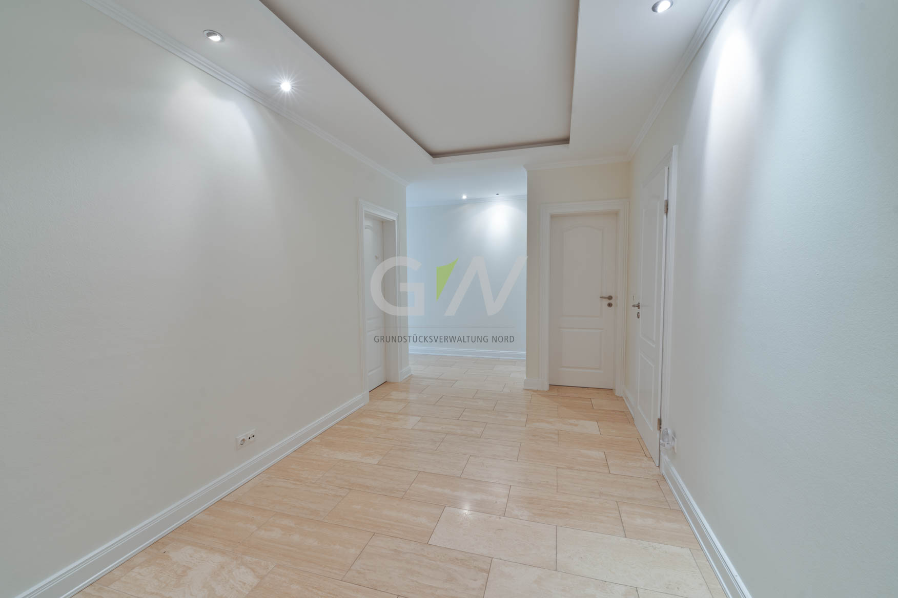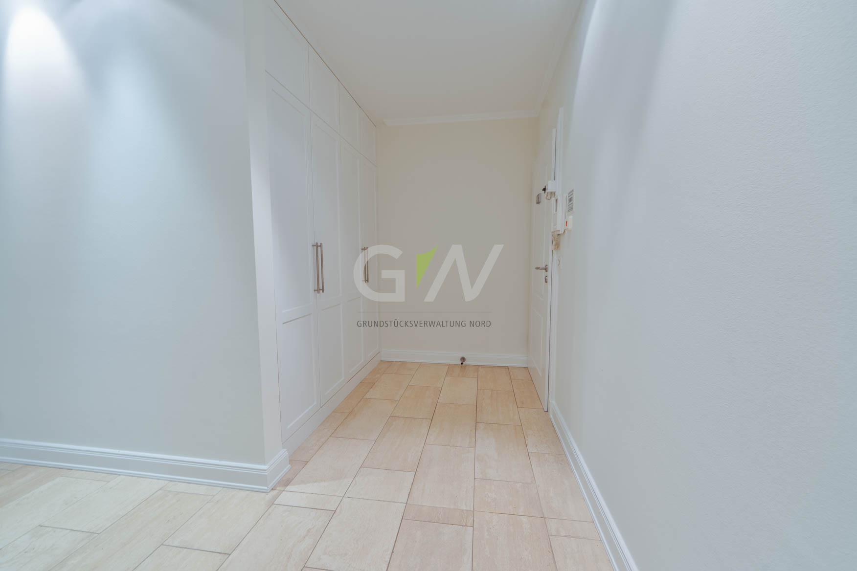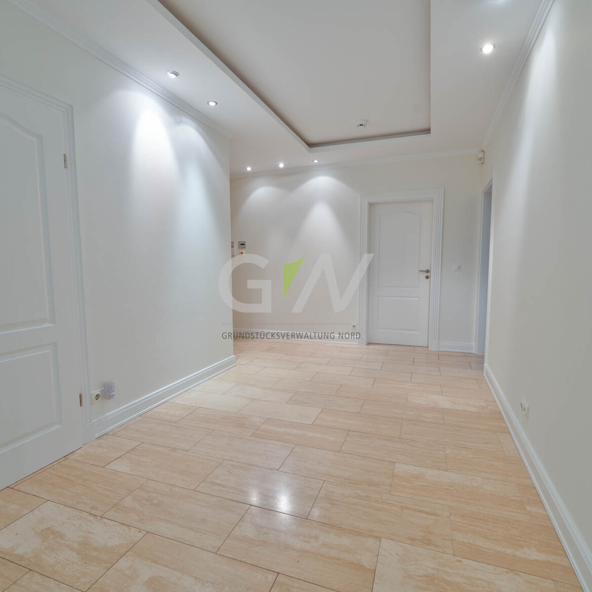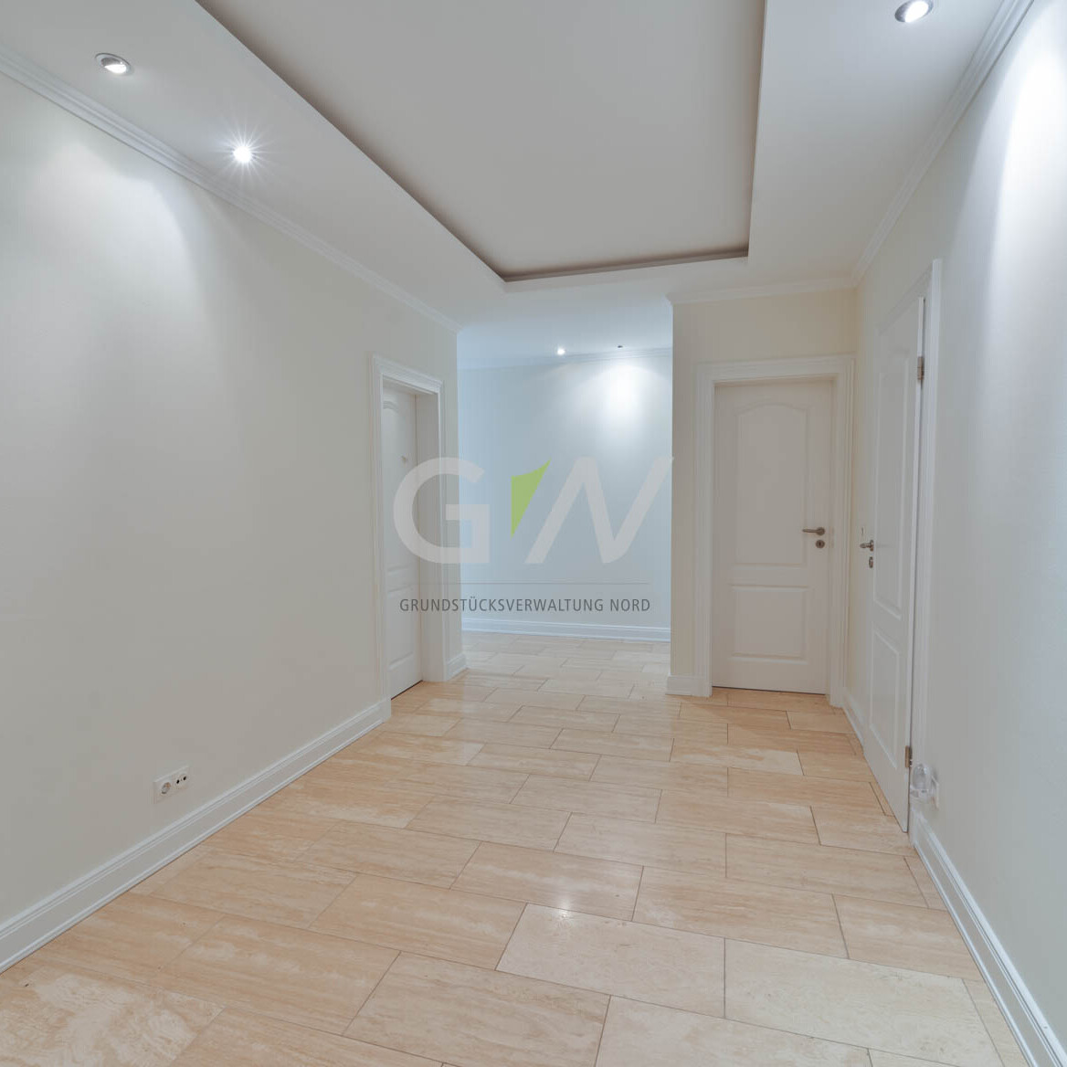 Die gesamte Wohnung hat vor wenigen Tagen einen weißen Komplett-Anstrich erhalten und die Einbauschränke, Türzargen und Türblätter wurden neu lackiert. Anders als auf den abgebildeten Fotos, ist die Möblierung entfernt worden und die Wohnung wird – bis auf die Einbauschränke/Küche – unmöbliert veräußert.
