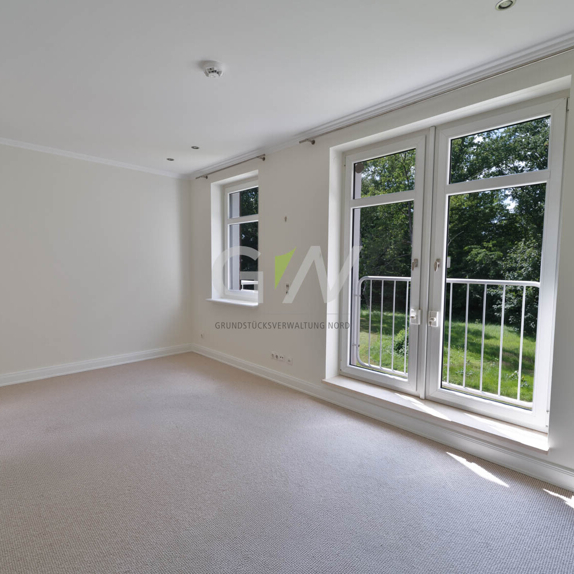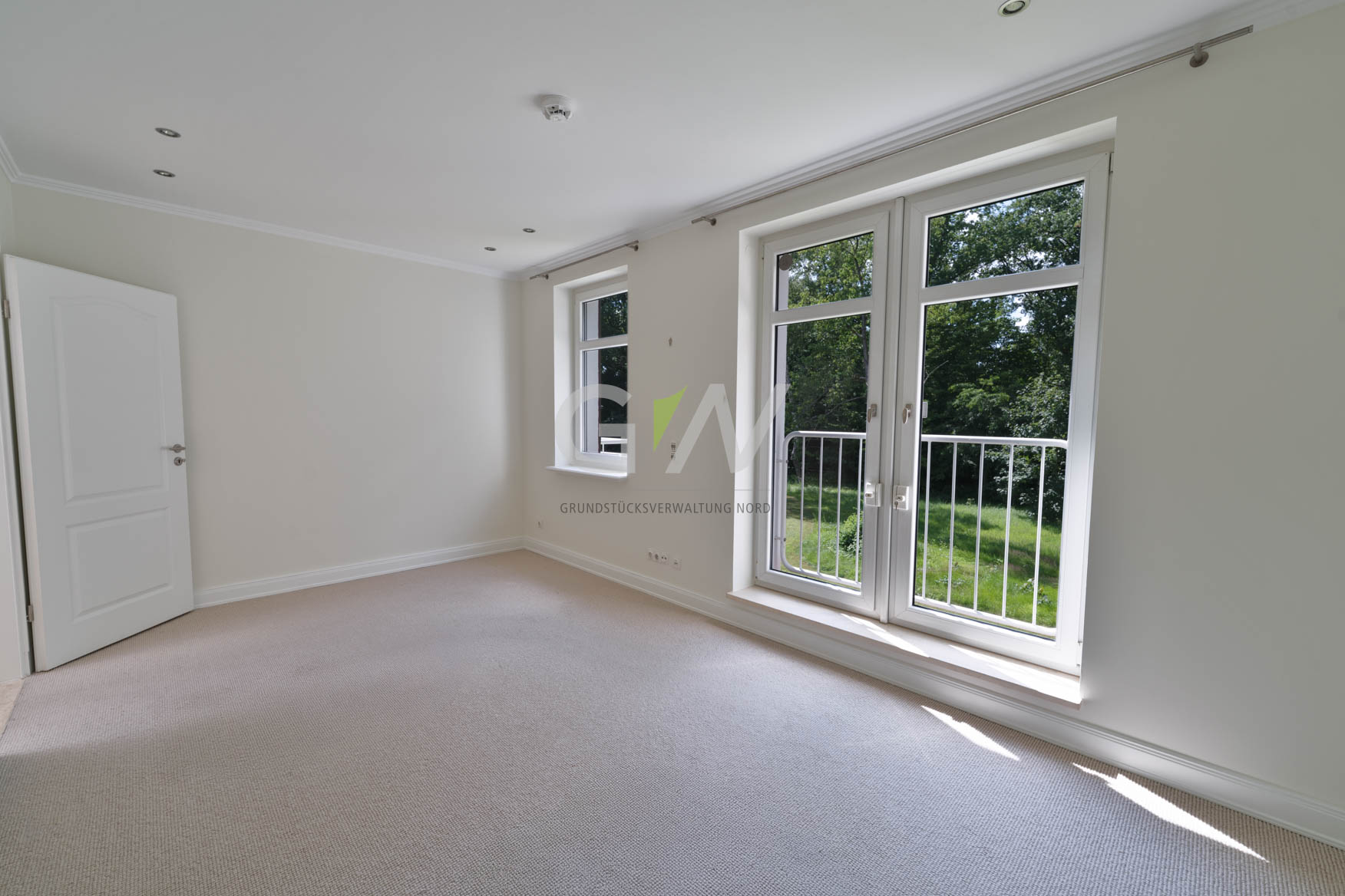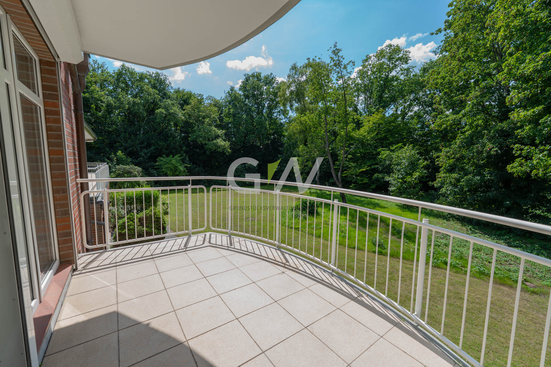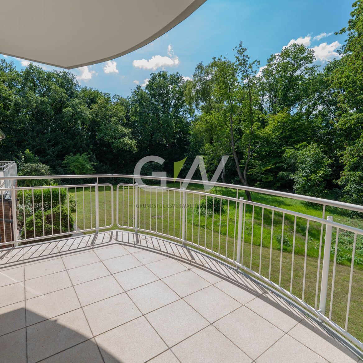 Von dem Hauptschlafzimmer begehbaren separaten Südbalkon (ca. 9,0 qm), genießt man ebenfalls einen wunderbaren Blick ins Grüne.