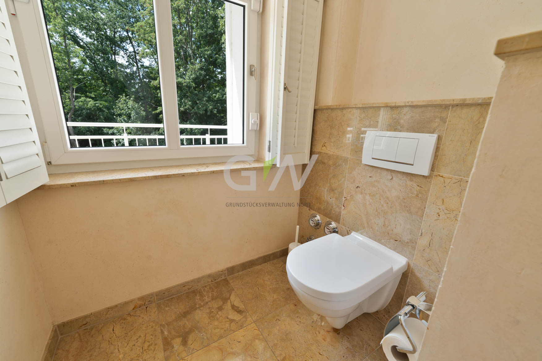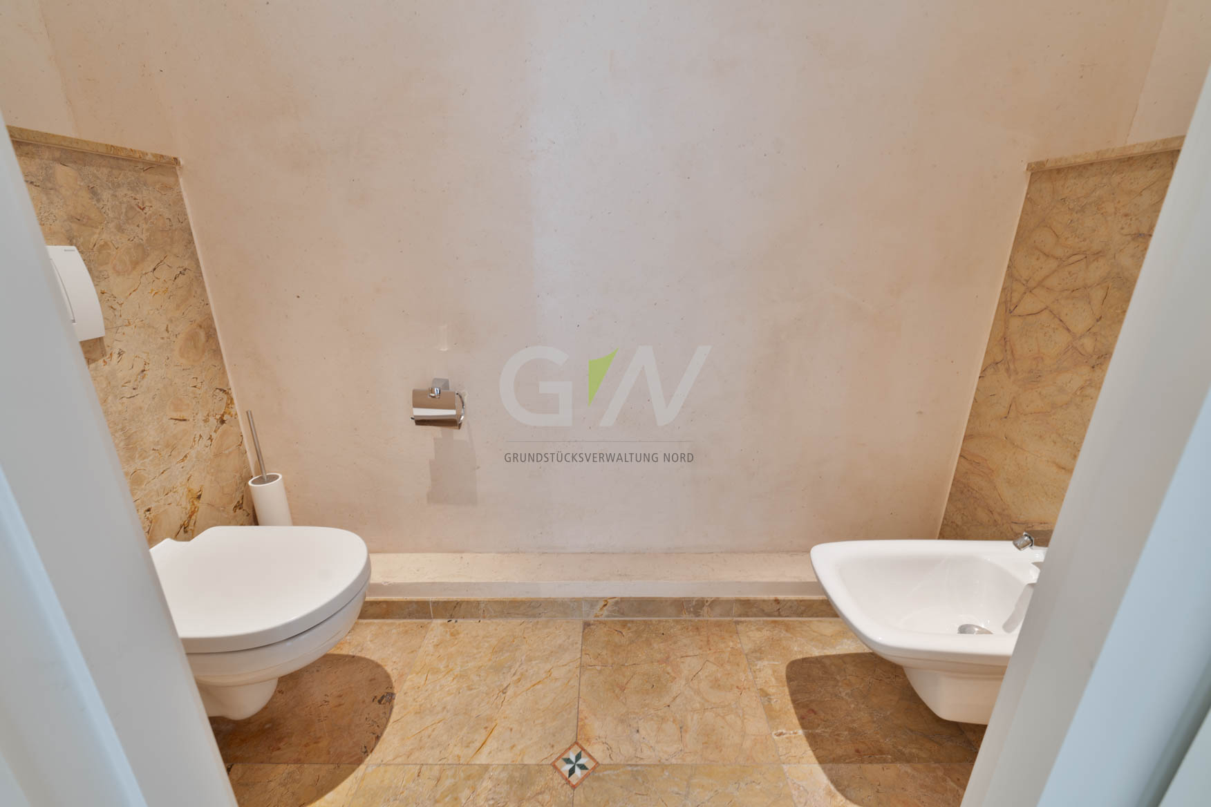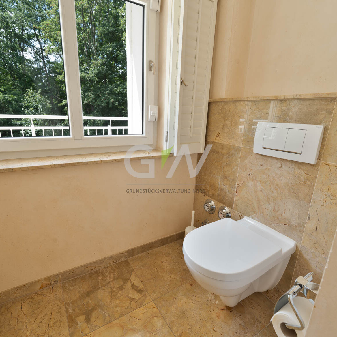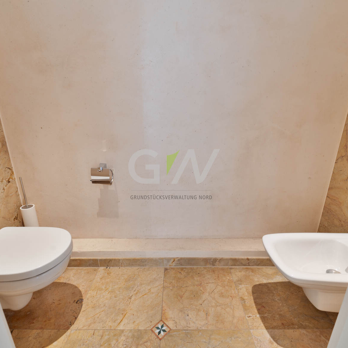 - Ein Gäste-WC mit Marmorfliesenbelag