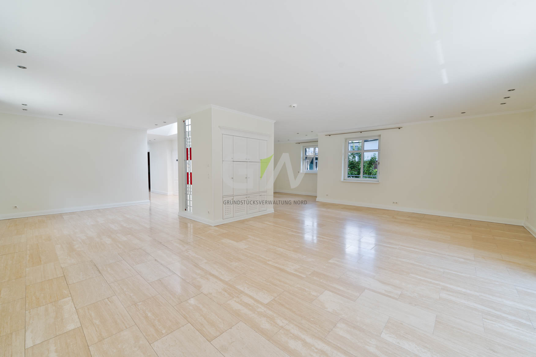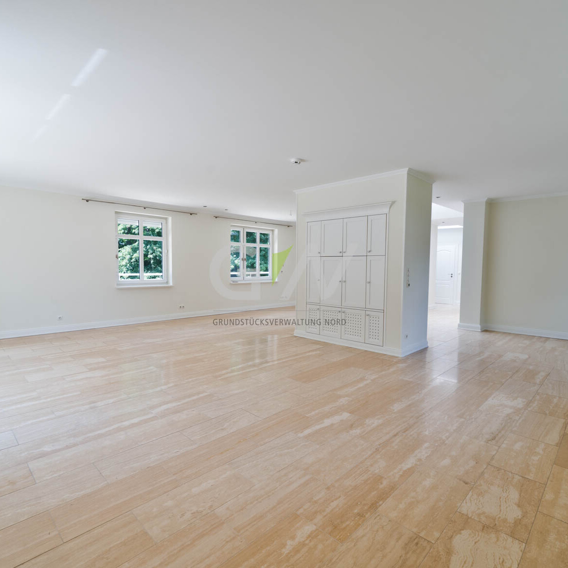 Die fünf Wohnräume erstrecken sich über insgesamt (ca.) 270 m² Wohnfläche. Hierzu zählen insbesondere der großzügige Wohn- und Essbereich (mit separater Leseecke), ein Arbeits- und Schlafzimmer, ein Gäste- und Ankleidezimmer zzgl. der Räume, Gäste-WC, ein vor wenigen Jahren neu geschaffenes Duschbad, sowie das Masterbad, zwei Flure, eine Diele sowie zwei Abstellräume.