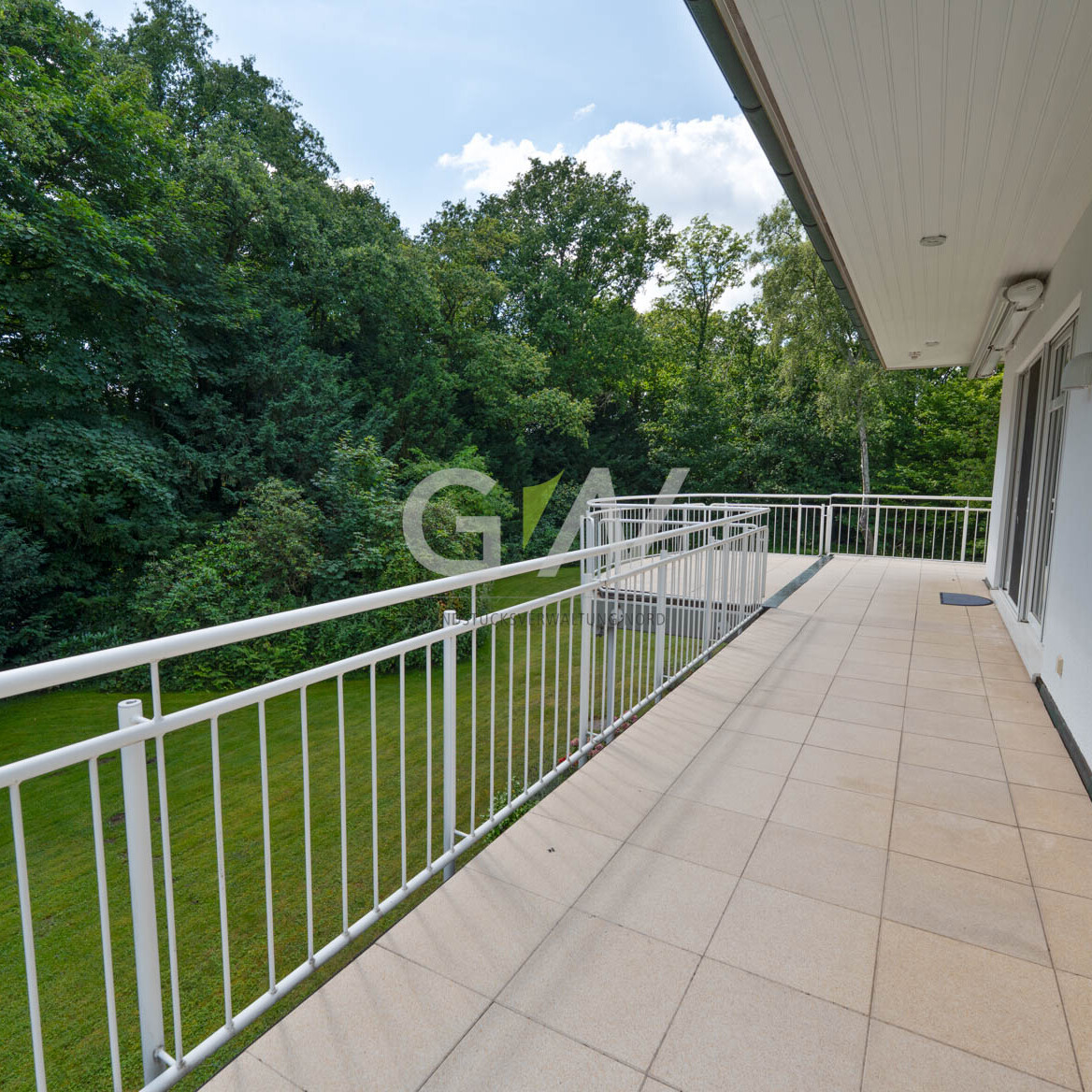 Die repräsentative -nach Süden ausgerichtete- Außenterrasse umläuft den gesamten Wohn- und Essbereich. In allen Räumen ist eine hervorragende Lichtdurchflutung gegeben. Der wunderbare Blick von der umlaufenden Terrasse in die parkähnliche Grünanlage, spricht für eine einzigartige Wohnqualität.